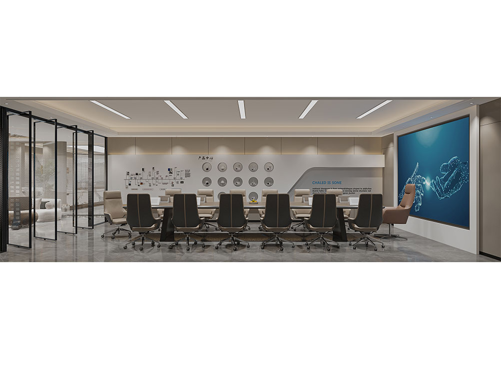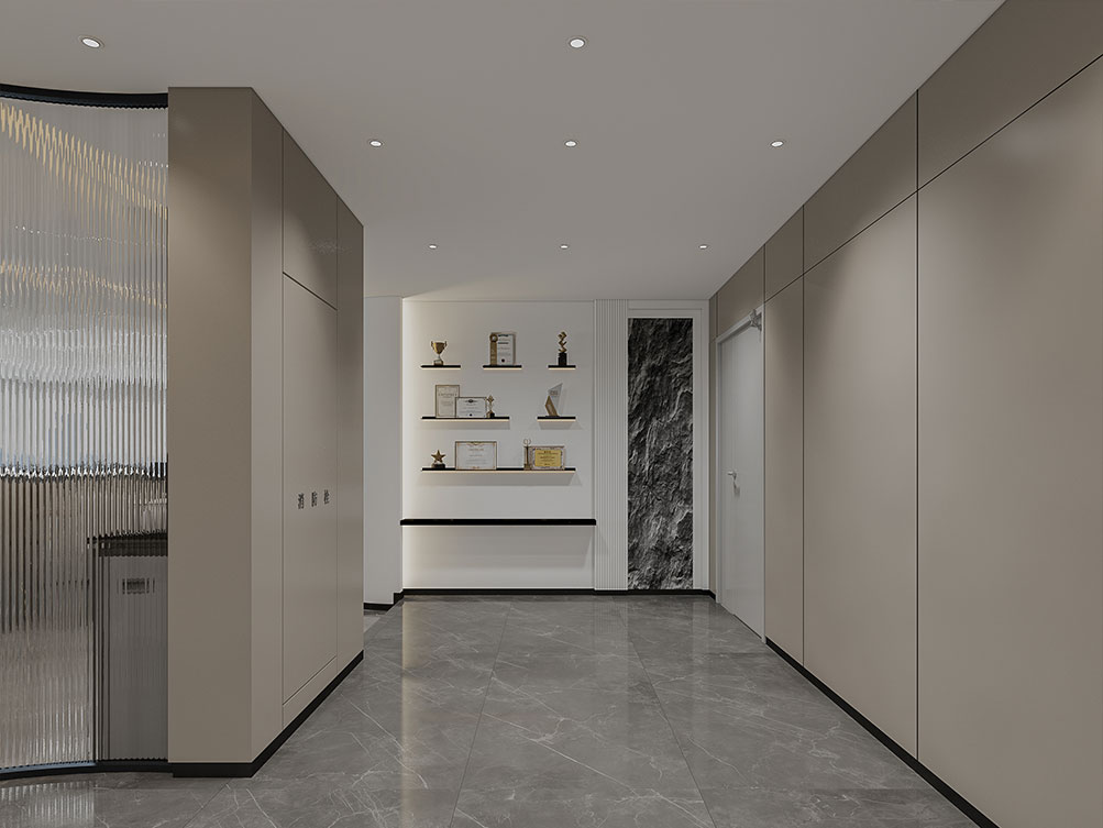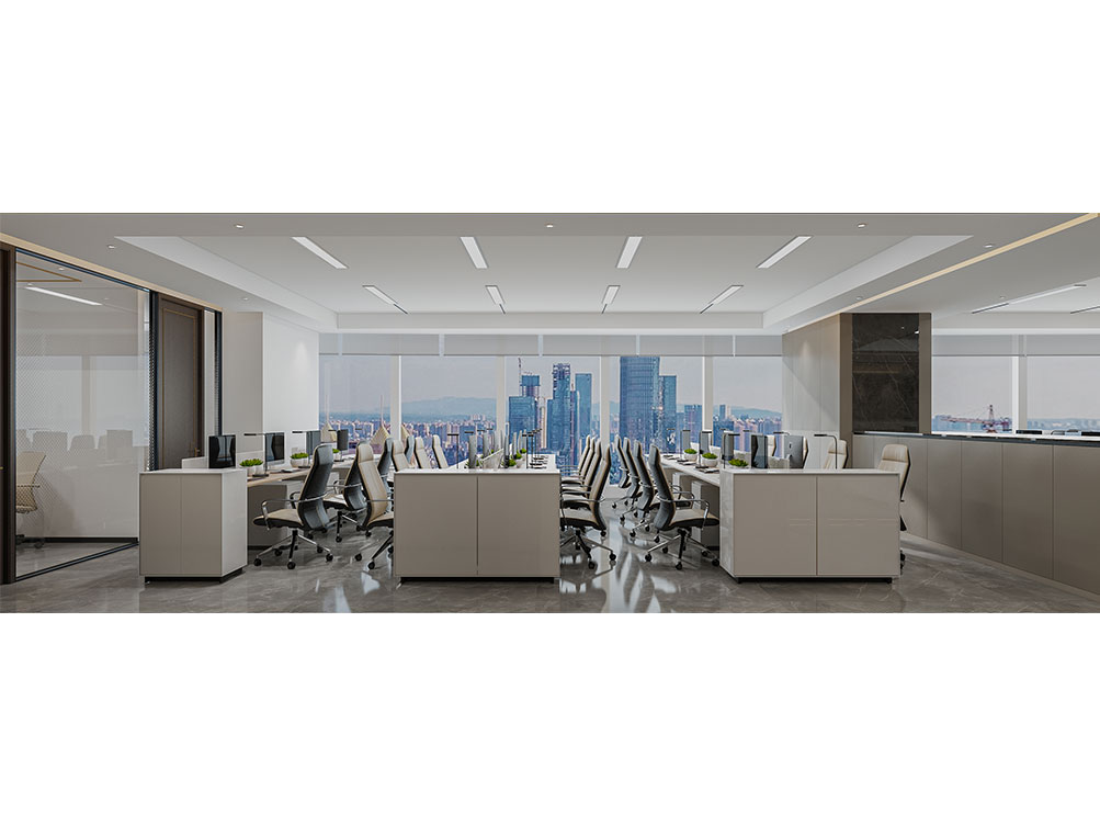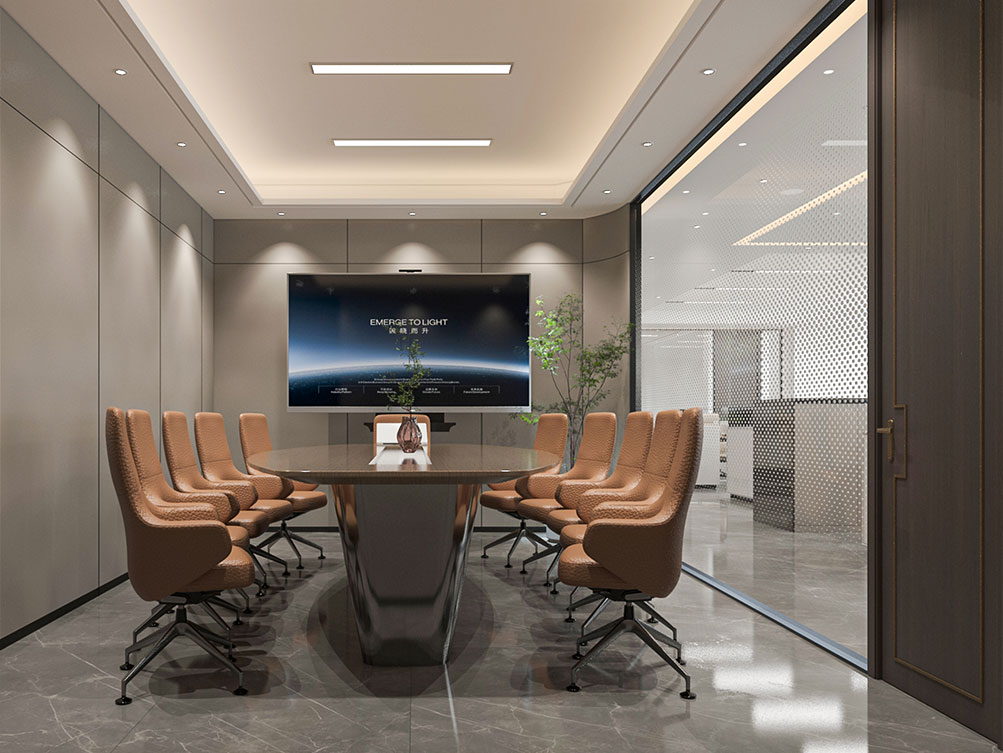 風(fēng)順集團(tuán)裝修效果以 “大氣沉穩(wěn) + 現(xiàn)代高效” 為核心,整體采用深灰、米白為主色調(diào)搭配金屬線條點(diǎn)綴,凸顯企業(yè)質(zhì)感。前臺(tái)接待區(qū)用大理石背景墻嵌入集團(tuán) LOGO,搭配簡(jiǎn)約大氣的接待臺(tái)與藝術(shù)擺件,營(yíng)造專(zhuān)業(yè)第一印象;濟(jì)南辦公室裝修為開(kāi)放辦公區(qū)采用模塊化工位設(shè)計(jì),配備獨(dú)立收納與人體工學(xué)座椅,墻面穿插集團(tuán)發(fā)展歷程掛畫(huà)與綠植,兼顧高效與舒適;會(huì)議室按規(guī)模配置高清會(huì)議系統(tǒng)與吸音材質(zhì),滿足不同商務(wù)需求;同時(shí)預(yù)留休閑茶水區(qū)與榮譽(yù)展示墻,既方便員工放松,也直觀傳遞企業(yè)實(shí)力,整體空間兼具品牌形象與實(shí)用功能。