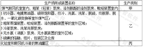 表B-1煤氣凈化車間主要生產(chǎn)場(chǎng)所生產(chǎn)類別