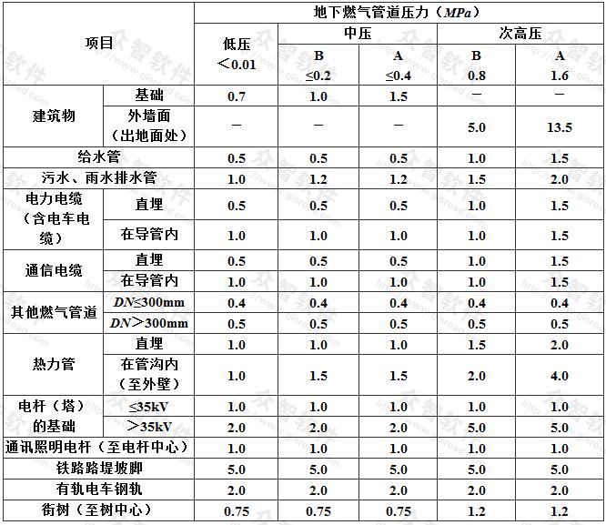 6.7.5地下燃?xì)夤艿琅c交流電力線接地體的凈距不應(yīng)小于表6.7.5的規(guī)定。