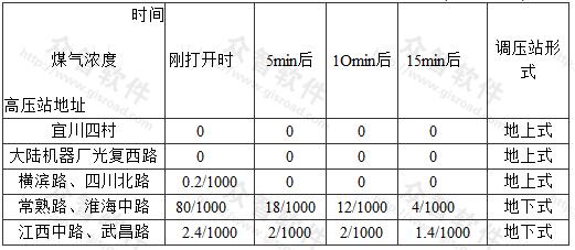 原上海市煤氣公司曾用“臭敏檢漏儀”對調(diào)壓站室內(nèi)煤氣(人工煤氣)濃度進(jìn)行測定,在正常情況下(通風(fēng)換氣為每小時2次),地上調(diào)壓站室內(nèi)空氣中的煤氣含量是極少的,詳見表35。