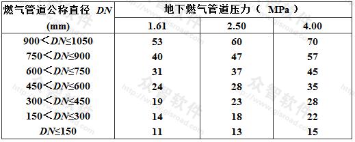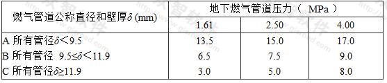 從上述九個特大城市看,門站后高壓輸氣管道一般成環(huán)狀或支狀分布在市區(qū)外圍,其壓力為2.0~4.48MPa不等,一般不需敷設(shè)壓力大于4.0MPa的管道,由此可見,門站后城市高壓輸氣管道的壓力為4.0MPa已能滿足特大城市的供氣要求,故本規(guī)范把門站后燃?xì)夤艿缐毫m用范圍定為不大于4.0MPa。