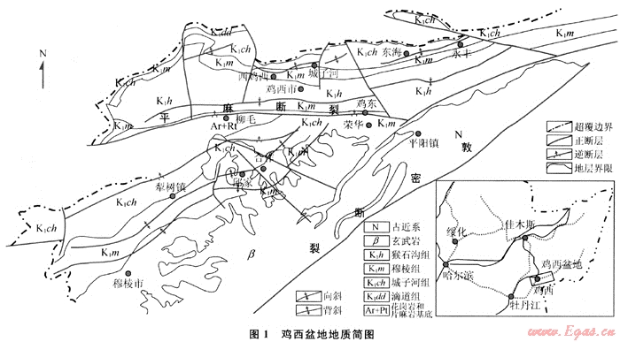 雞西盆地是大慶外圍較重要的中新生代盆地,沉積了超過2000m的早白堊世海陸交互相和陸相富含煤和暗色泥巖地層。但油氣勘探尚處在起步階段[1],對該盆地的含氣性研究程度很低。筆者根據(jù)野外地質(zhì)考察認(rèn)識、樣品分析數(shù)據(jù)并綜合大量煤田鉆探資料,對雞西盆地的油氣地質(zhì)條件進(jìn)行初步分析,希望能給相關(guān)研究提供借鑒。