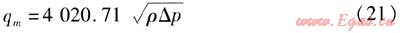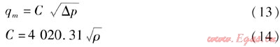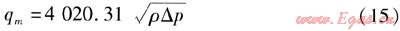 將溫度(20℃)換算成熱力學溫度(293.15K)代入式(3),流量公式為: