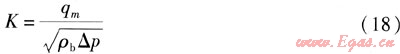 將數(shù)據(jù)qV=3000m3/h,ρn=1.293kg/m3,L=273.15K,pg=5kPa,p0=100kPa,pn=101.32kPa,t=20℃,△p=0.74377kPa代入式(12),可求得:K=4025.3021。