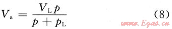 式中:Va為飽和吸附氣量,m3/t;p為儲層壓力,MPa。