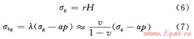 式中:σg為垂向應(yīng)力,MPa;r為地層平均密度,g/cm3,取值2.3g/cm3;H為煤層埋深,m;σhg為垂直應(yīng)力在水平方向產(chǎn)生的分應(yīng)力,MPa;λ為側(cè)壓系數(shù);α為畢奧特系數(shù);p為孔隙壓力,MPa;v為泊松比,取值0.3。