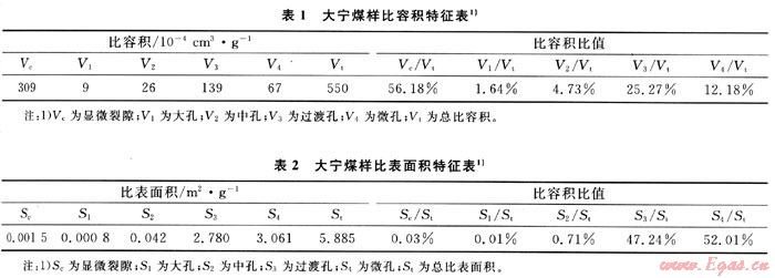 儲層氣壓為0.5MPa(大寧礦同埋深實測瓦斯壓力),則單體體積(1m3)煤的飽和游離氣量由式(3)、(4)計算為1.30m3/m3煤,即為0.84m3/t;由朗格繆爾公式(8)計算單位體積煤的飽和吸附氣量為17.00m3/t。