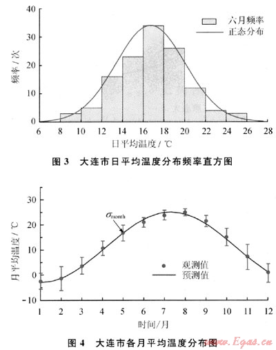 如果用有效溫度(Teff)代替日平均溫度(T)來描述月平均溫度(Tm)隨月份的變化曲線,經(jīng)驗(yàn)證分布規(guī)律相同。綜上可得,大連地區(qū)各個(gè)月內(nèi)日有效溫度(Teff)分布規(guī)律如式(7)所示。