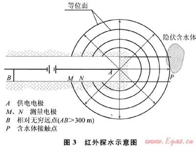 HY-303紅外探水儀,能探測(cè)20~30m范圍內(nèi)的地下水狀況?;驹恚寒?dāng)掘進(jìn)前方30m范圍內(nèi)存在含水構(gòu)造或溶洞時(shí),前方災(zāi)害源產(chǎn)生的紅外異常場(chǎng),必然會(huì)傳播到掘進(jìn)后方,因而在掘進(jìn)后方隧道的側(cè)壁上能提前發(fā)現(xiàn)災(zāi)害源產(chǎn)生的紅外異常場(chǎng)。其特點(diǎn)為:①距離短,一般為35m;②只定性告知35m范圍內(nèi)有無水,至于水壓、水量、具體哪個(gè)里程則探測(cè)不出;③適用于任何地層中定性判斷探測(cè)點(diǎn)前方“有沒有水”及水體存在方位;④儀器小巧輕便,操作簡(jiǎn)單,可實(shí)現(xiàn)全空間全方位探測(cè);⑤資料分析簡(jiǎn)潔、快速、直觀;⑥基本不占用隧道施工時(shí)間。