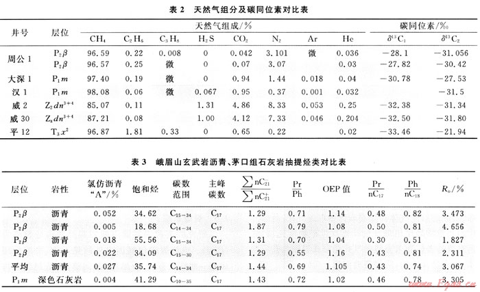 滇黔地區(qū)玄武巖中瀝青及有機(jī)包裹體研究認(rèn)為,該區(qū)曾發(fā)育過古油氣藏[6~8],而周公山玄武巖氣藏的形成也不是孤立的地質(zhì)事件,在地史發(fā)展中凡具備儲(chǔ)集能力的玄武巖分布區(qū)均可能聚集成藏。