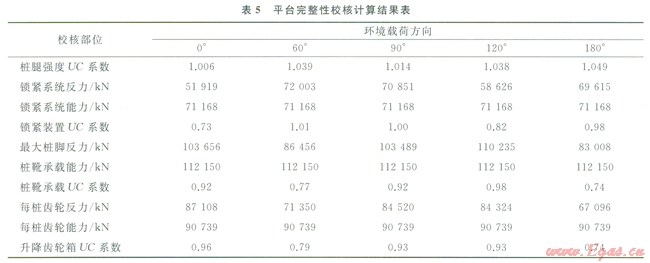 運用本文闡述方法進行綜合校核評估的結(jié)果:該型平臺可在該海域環(huán)境參數(shù)條件下進行生產(chǎn)作業(yè)。