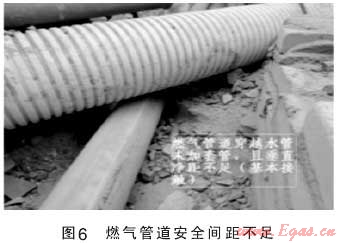 主要表現(xiàn)在:1)對(duì)壓力管道安全知識(shí)缺乏和對(duì)壓力管道有關(guān)介質(zhì)(如液化石油氣和天然氣)安全知識(shí)貧乏;2)對(duì)安全距離重視不足,壓力管道與其它設(shè)施距離不符合規(guī)范(GB50028-2006)相關(guān)要求,壓力管道與生活設(shè)施安全距離不足;3)無(wú)安全操作制度或有規(guī)定要求不嚴(yán)格執(zhí)行(如圖6、7、8)。