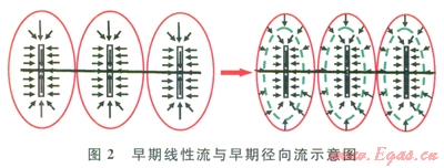 如果頁巖氣井生產(chǎn)時間夠長,隨著泄流面積的增大,整個水平井段和裂縫系統(tǒng)就如同l口影響范圍擴(kuò)大了的直井,在距離水平井段和裂縫系統(tǒng)較遠(yuǎn)的儲層內(nèi)就會出現(xiàn)系統(tǒng)徑向流(圖3)。對于頁巖氣井l而言,由于滲透率較低,系統(tǒng)徑向流出現(xiàn)的時間很晚,在頁巖氣井的整個生命期內(nèi)一般不會出現(xiàn)系統(tǒng)徑向流[15]。