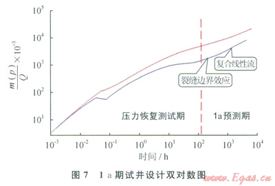 從圖7中的la預(yù)測期可以看出,壓力恢復(fù)測試期過后表現(xiàn)為裂縫邊界流和復(fù)合線性流特征,氣井生產(chǎn)1a仍然沒有出現(xiàn)系統(tǒng)徑向流和外邊界效應(yīng),同時也驗(yàn)證了測試期出現(xiàn)的線性流和徑向流分別為早期線性流和早期徑向流。