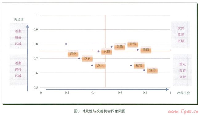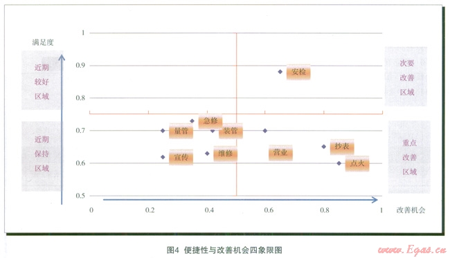 從穩(wěn)定性、時效性和便捷性與服務(wù)改善機(jī)會的象限圖,導(dǎo)出客戶關(guān)注的需求點(diǎn),識別…近期服務(wù)的重點(diǎn)改善和次要改善機(jī)會兩方面內(nèi)容,采取相應(yīng)的改進(jìn)措施(見表2和表3)。