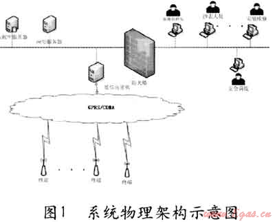 根據(jù)公司對(duì)網(wǎng)絡(luò)安全的特殊要求,采用GPRS/CDMA專(zhuān)線,實(shí)現(xiàn)采集終端和服務(wù)器平臺(tái)之間采用端到端加密,避免信息在整個(gè)傳輸過(guò)程中出現(xiàn)泄漏的可能,兩者通過(guò)防火墻進(jìn)行隔離,并在防火墻上進(jìn)行IP地址和端口過(guò)濾。