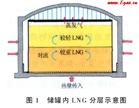 LNG是多組分混合物,因溫度和組分的變化,液體密度的差異使儲(chǔ)罐內(nèi)的LNG可能發(fā)生分層。一般罐內(nèi)液體垂直方向上溫差大于0.2、密度大于0.5kg/m3時(shí),即認(rèn)為罐內(nèi)液體發(fā)生了分層。
