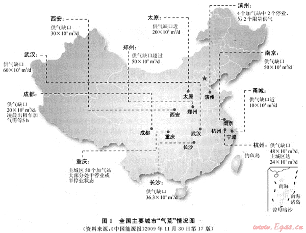 2009年11月,隨著大范圍雨雪天氣的來臨,中國許多地區(qū)出現(xiàn)了“氣荒”——天然氣供應(yīng)緊張的局面。過去幾年間,也出現(xiàn)過天然氣供應(yīng)緊張現(xiàn)象,但像今年如此大規(guī)模天然氣供應(yīng)缺口,還是首次。
