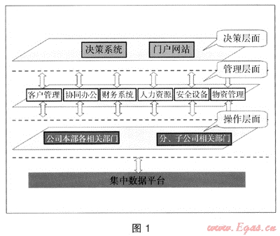 在系統(tǒng)建設(shè)時(shí),要加強(qiáng)系統(tǒng)分析,充分考慮不同管理層面對信息處理要求的差異,搭建系統(tǒng)架構(gòu)。主要分為如下3個(gè)層面: