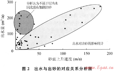 生產(chǎn)數(shù)據(jù)統(tǒng)計結(jié)果顯示,澀北氣田的氣井普遍出砂[6~7],沉砂高度越大的井,對應(yīng)的累計產(chǎn)氣量越低,累計出水量也越大,表明出砂影響了氣井的開采效益,出水將加劇出砂(圖2)。