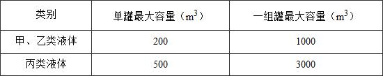 表4.2.3 甲、乙、丙類液體儲罐分組布置的最大容量