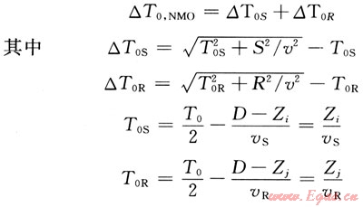 式中△TS和△TR為炮、檢點(diǎn)正常時差;S、R為炮點(diǎn)和檢波點(diǎn)到CMP點(diǎn)水平距離;口為動校正速度;T0C為CMP點(diǎn)的丁T0時間;T0為基準(zhǔn)面時間。