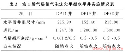 2009年先后針對大牛地氣田的盒1段氣層在DP14井、DP19井和DP22井開展了氮?dú)馀菽菲胶忏@水平井的現(xiàn)場試驗(yàn),在儲層保護(hù)、油氣發(fā)現(xiàn)、自然建產(chǎn)和提高鉆井速度方面取得了顯著效果,表3給出了盒1段氣層氮?dú)馀菽菲胶馑骄畬?shí)施情況。