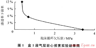 為了盡可能地減小對儲層的傷害,通過室內(nèi)實(shí)驗(yàn)對潛在的傷害機(jī)理進(jìn)行了評估。收集了盒1段氣層的巖心資料進(jìn)行了具體的儲層傷害分析。