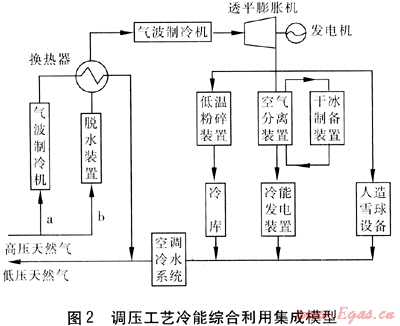 損過大,從能量有效利用的角度來看不合理。因此,探索調(diào)壓工藝冷能的綜合利用,減少