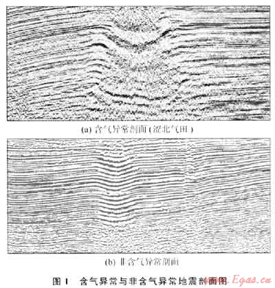 如圖1-a所示,在三湖地區(qū)地震剖面上出現(xiàn)的低頻、同相軸下拉現(xiàn)象是典型的含氣識別標(biāo)志。在圖1-b所示的地震資料異常與圖1-a含氣地震響應(yīng)類似,但鉆探的結(jié)果未發(fā)現(xiàn)工業(yè)氣流。通過對該區(qū)域表層結(jié)構(gòu)的調(diào)查和分析認(rèn)識到,巨厚疏松的低降速帶也可以造成類似的地震異常[2]。如何有效識別近地表結(jié)構(gòu)引起的地震異常,一直未得到很好的解決。從技術(shù)上講,需要有效的方法來識別和區(qū)分近地表結(jié)構(gòu)引起的地震異常和地層含氣造成的地震異常,在識別的基礎(chǔ)上,采取一定的方法和措施對地表結(jié)構(gòu)異常帶來的地震異常進(jìn)行處理和消除。
