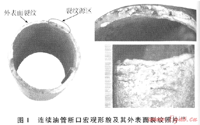 案例2:1.5″(38.1mm)的80鋼級連續(xù)油管在川渝氣田某井進行排液作業(yè),在連續(xù)油管回取過程中,連續(xù)油管發(fā)生了開裂。該井為含硫井,作業(yè)過程中未加注SSC緩蝕劑。該卷連續(xù)油管之前還在含H2S氣井中進行過4次氣舉排液作業(yè)。連續(xù)油管的回起過程中發(fā)生了開裂,該連續(xù)油管電化學腐蝕嚴重,斷口具有脆性特征,其斷口見圖2。