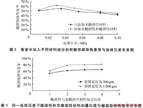 實驗用工作液分2種:①在基漿中只加入非酸溶性防漏堵漏材料;②在基漿中既加入非酸溶性防漏堵漏材料又加入不同分量的酸溶性材料。