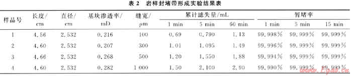 2.2.1封堵帶形成實驗及其結果