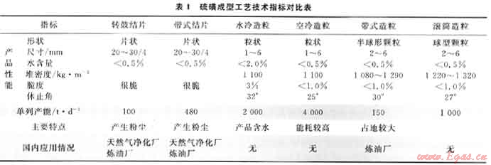 由硫磺成型工藝比較(表1)可見,凈化廠若采用單列產(chǎn)能500~1000t/a的硫磺成型工藝,需10余臺硫磺成型裝置,占地面積大,運行及維護成本高。單列產(chǎn)能2000t/d以上工藝相互對比,空冷造粒工藝能耗高,硫磺脆度大,在運輸過程中易形成粉塵,帶來火災、爆炸隱患;而經(jīng)水冷造粒成型的硫磺,硬度大,含水,不易產(chǎn)生粉塵。因此,凈化廠采用國內(nèi)首套濕法硫磺成型工藝,建成4套DEVC0濕法成型機,產(chǎn)能360t/h,硫磺適宜的含水量降低了生產(chǎn)及裝車過程的粉塵,安全性能高。