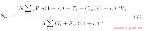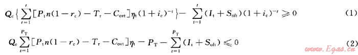 單井初期產(chǎn)量界限指在一定的開發(fā)技術(shù)和財(cái)稅體制下,氣井所獲得的收益能彌補(bǔ)全部投資、采氣操作費(fèi)并獲得最低收益率時(shí)初期所應(yīng)達(dá)到的最低產(chǎn)量,當(dāng)氣井初期產(chǎn)量大于這一值時(shí),則認(rèn)為經(jīng)濟(jì)上是可行的。計(jì)算方法為同時(shí)滿足公式(1)和(2)中的Qc的值。即