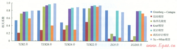 圖2 各種模型實測橫波與預測橫波相關系數圖