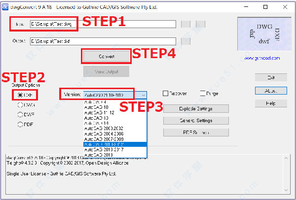 在DWG,DXF和DWF文件之間轉(zhuǎn)換,例如將DWG轉(zhuǎn)換為DXF / DXF到DWG / DWG