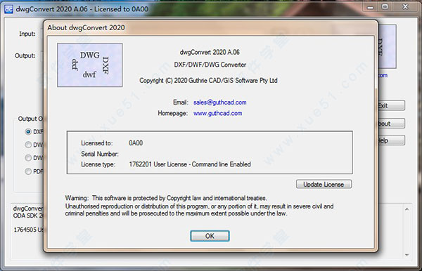 4、至此,dwgConvert(AutoCAD版本轉(zhuǎn)換器) 2020 A.06破解版成功注冊破解,運行打開軟件,用戶可以無限制免費使用啦